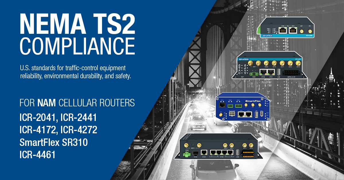 We’re excited to announce that our North American cellular routers — ICR-2041, ICR-2441, ICR-4172, ICR-4272, SmartFlex SR310, and ICR-4461 — have achieved NEMA TS2 compliance, a benchmark widely recognized in the U.S. traffic control and transportation industry. This certification isn’t just a label; it’s proof our hardware meets some of the most demanding standards for reliability, safety, and environmental resilience.