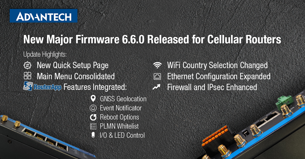 Advantech is excited to announce the latest version of ICR-OS, the proprietary firmware for our cellular routers. This major release brings a range of new features and improvements aimed at enhancing both the functionality and security of our routers.